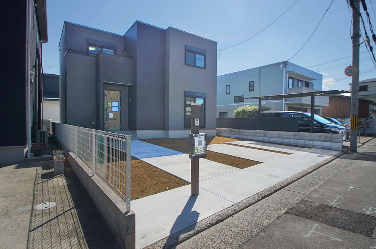 設備・特徴 | 電気 公営水道 都市ガス 公共下水 新築一戸建て アフターサービス保証付 耐震等級3 学校近し 全居室洋室 全居室収納あり シューズクローク ファミリークロゼット 複層ガラス 室内物干 トイレ2ヶ所 対面キッチン リビング階段 食洗機 浴室乾燥機 庭付き 駐車2台OK 土地広 | ||