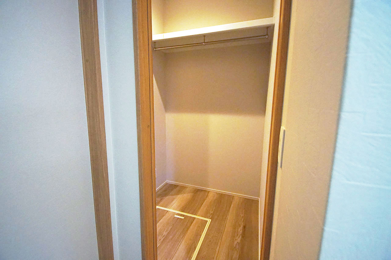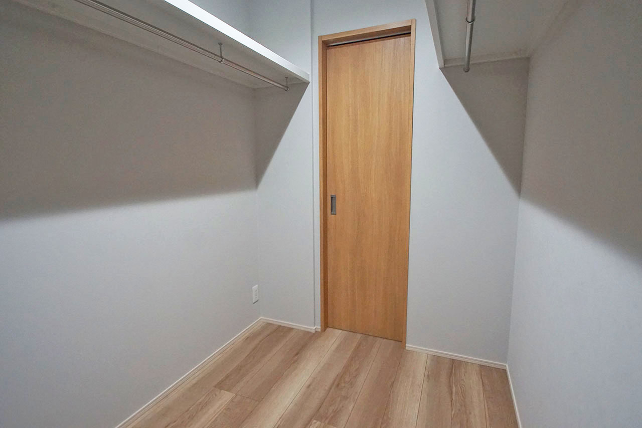 衣類以外にも色々な物を収納できるウォークインクロゼット。お部屋をより広くお使いいただけます。