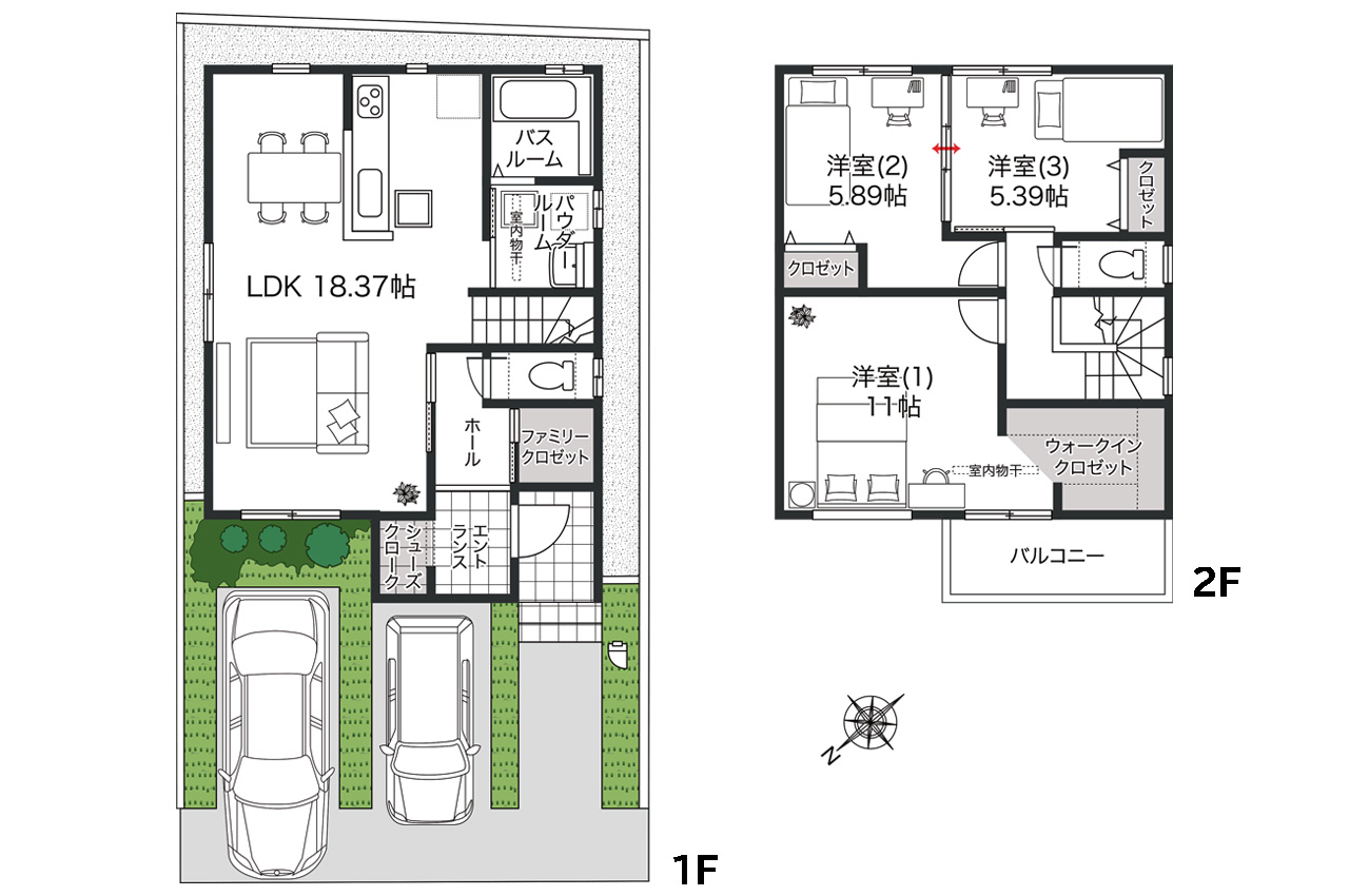 | 駐車スペース | 普通車1台 軽自動車1台 | ||