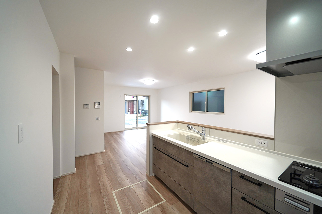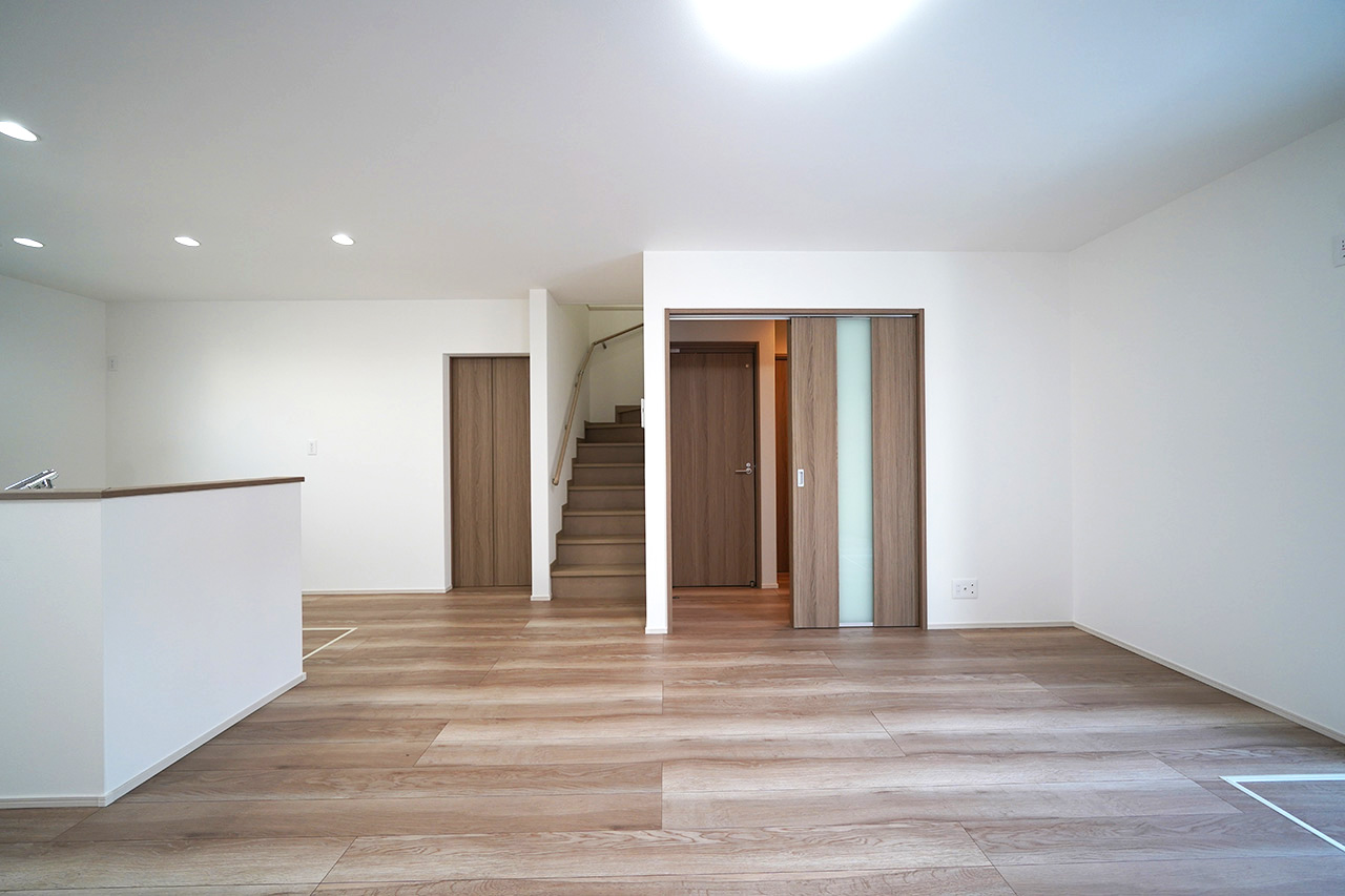 | 設備・特徴 | 電気 公営水道 都市ガス 公共下水 新築一戸建て アフターサービス保証付 耐震等級3 買物便利 学校近し 公園近く LDK16帖以上 全居室洋室 全居室収納あり ウォークインクロゼット シューズクローク ファミリークロゼット 複層ガラス 室内物干 トイレ2ヶ所 対面キッチン リビング階段 食洗機 浴室乾燥機 普通車1台軽1台OK 前面道路6m以上 | ||