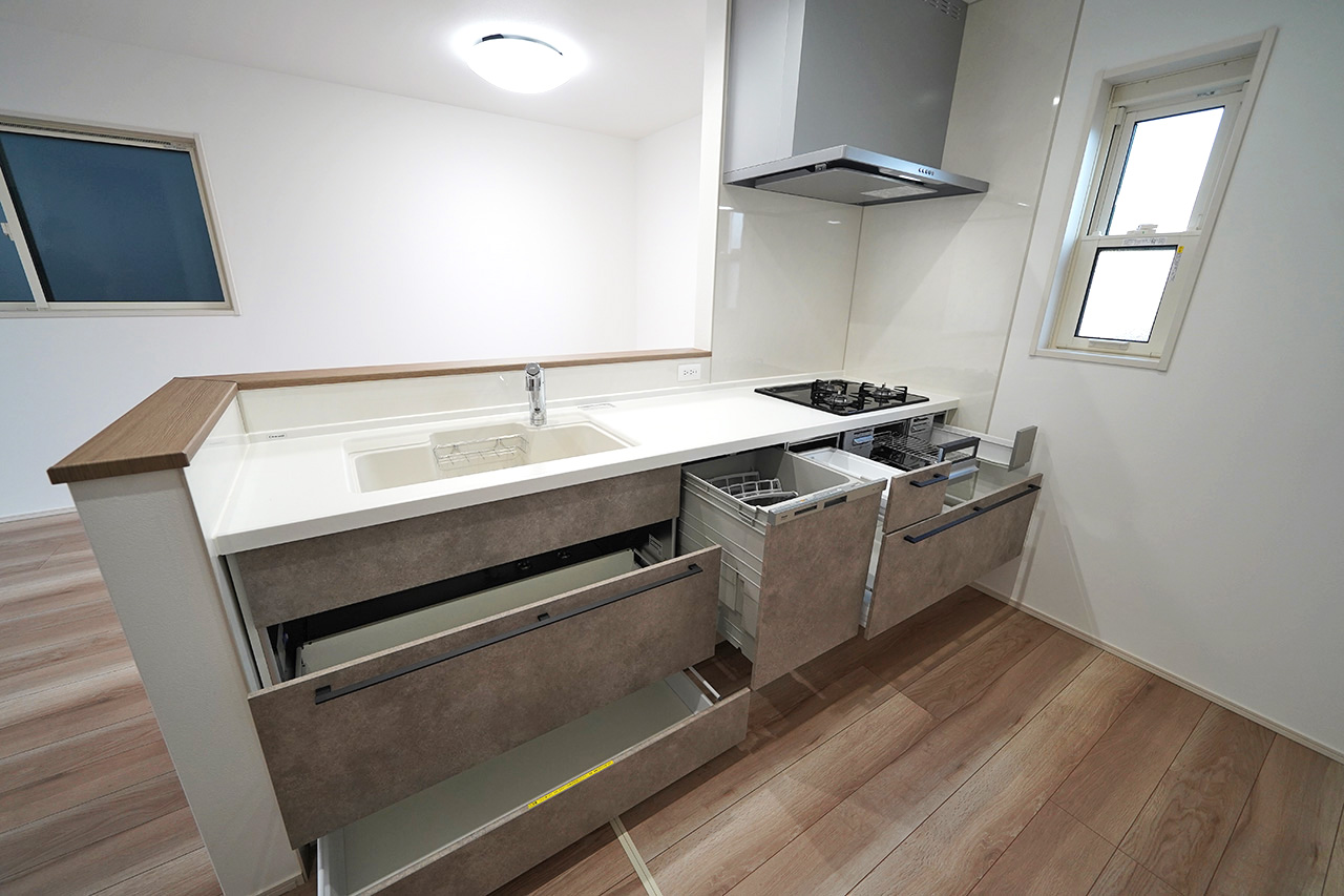 キッチン:リビングを見渡しやすいオープンタイプのキッチン