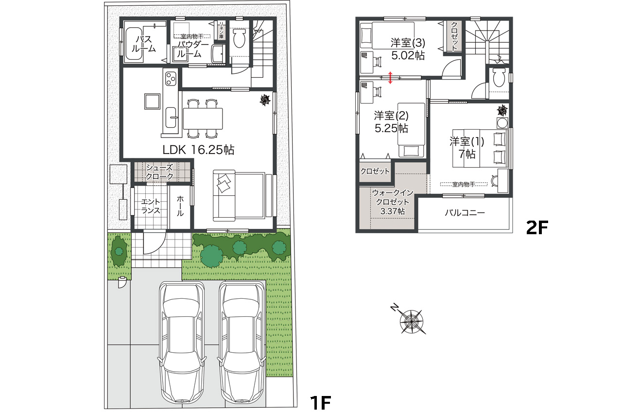 | 設備・特徴 | 電気 公営水道 オール電化(エコキュート) 公共下水 新築一戸建て アフターサービス保証付 耐震等級3 駅近 買物便利 学校近し 公園近く オール電化 IHコンロ LDK16帖以上 全居室洋室 収納多し 全居室収納あり ウォークインクロゼット シューズクローク 複層ガラス 室内物干 トイレ2ヶ所 対面キッチン 食洗機 浴室乾燥機 庭付き 駐車2台OK | ||