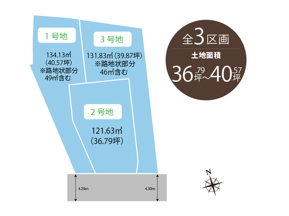 ・南面道路に面した全3区画