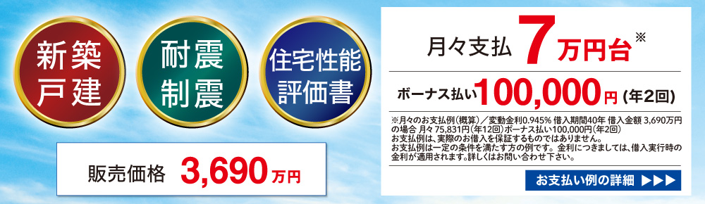 | 価格 | 3690万円 | 間取り | 3LDK+WIC +SC+FC |