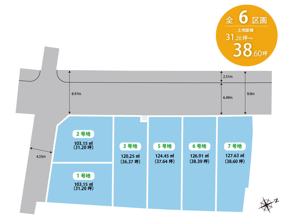 ・敷地面積31坪~38坪超、角地を含む全6区画