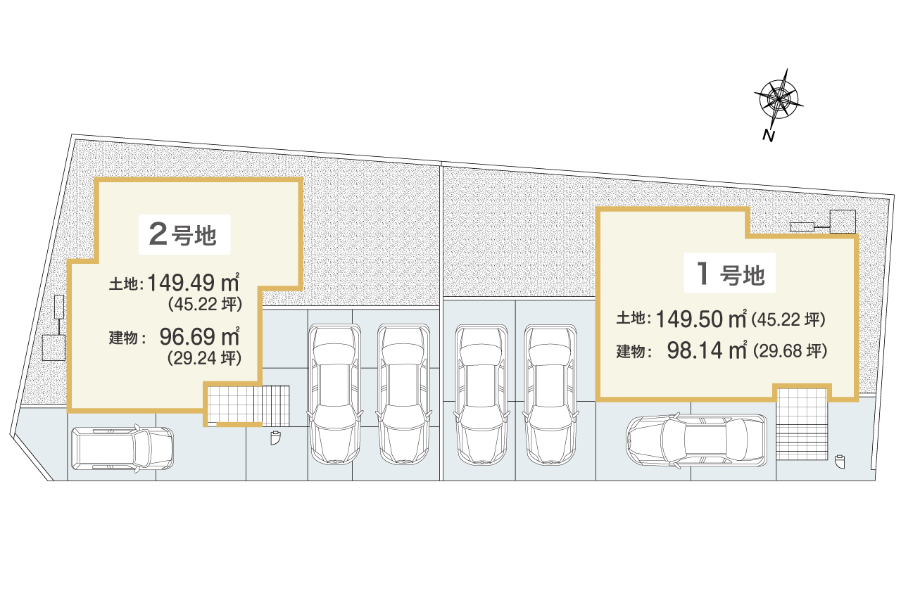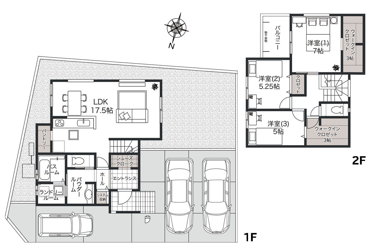 2号地:3LDK+SC+2FC+WIC(家具・車の表記はイメージ配置になり、実際には付きません)