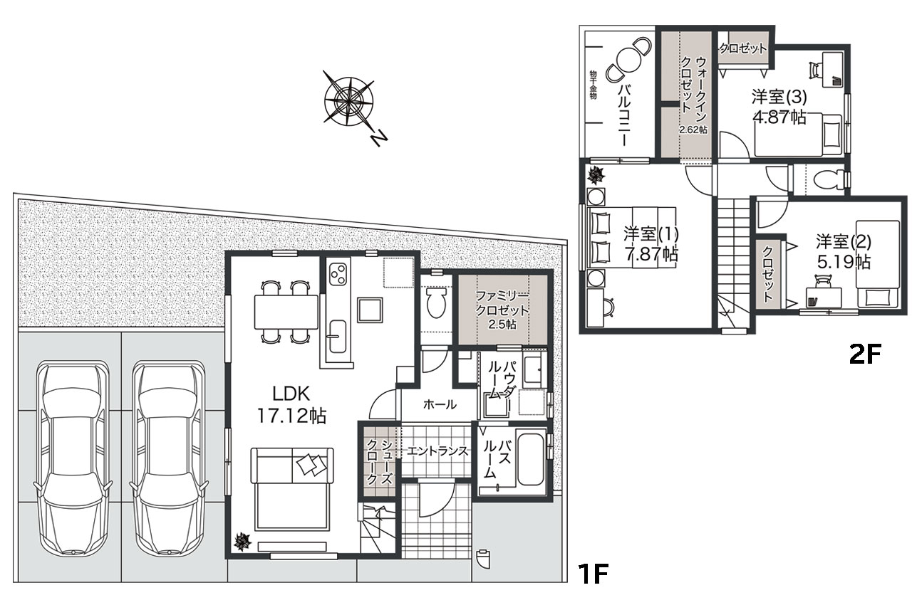 間取り図(家具・車の表記はイメージ配置になり、実際には付きません)