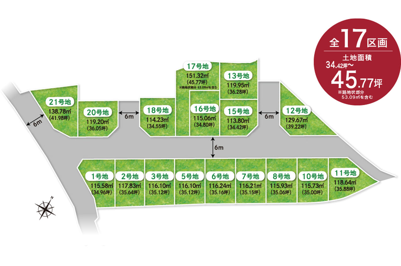 ・南向き区画、角地、整形地、旗竿地を含む、全17区画!