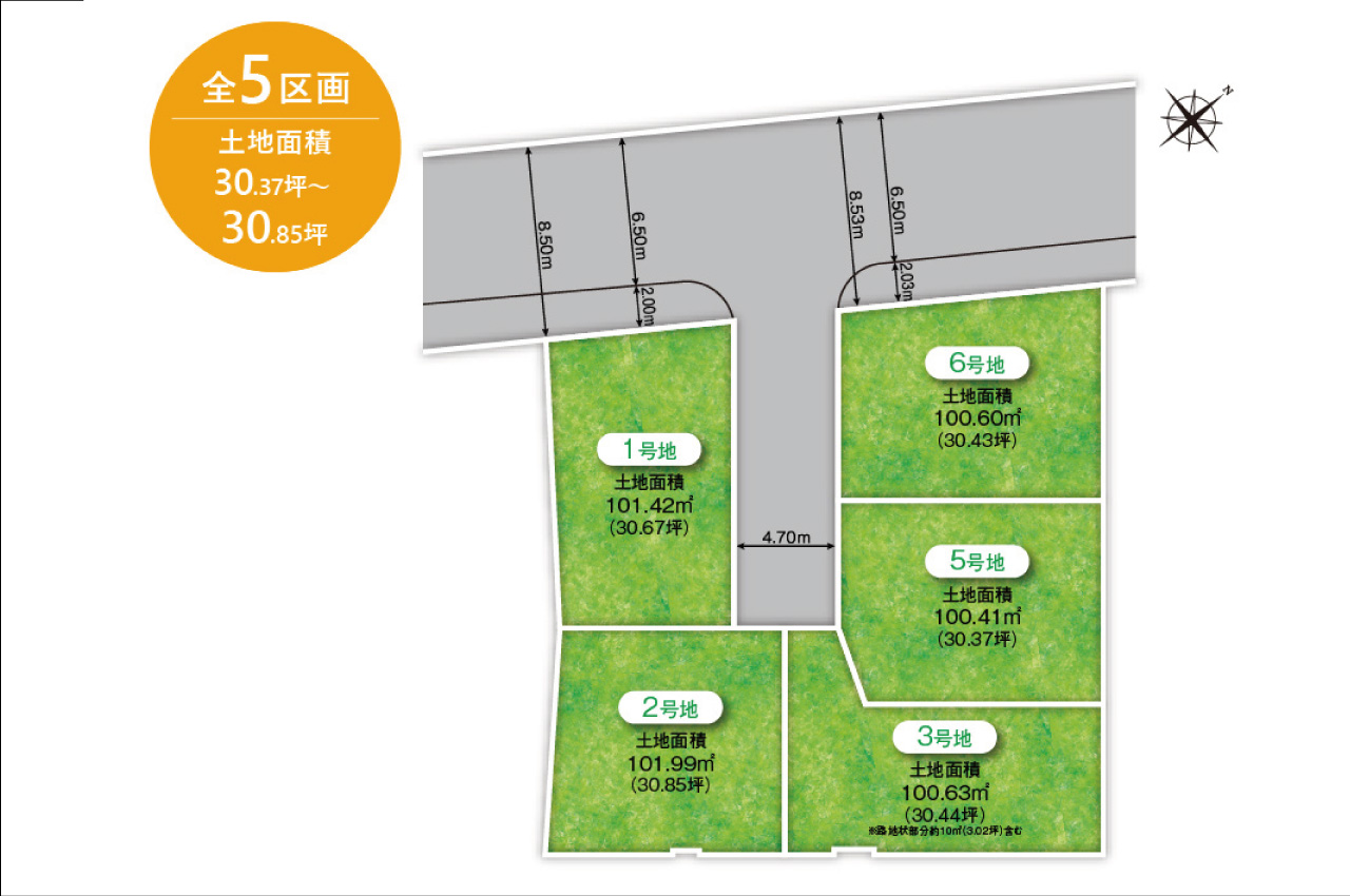 全区画30坪超!角地含む全5区画、自由設計の街が誕生します。