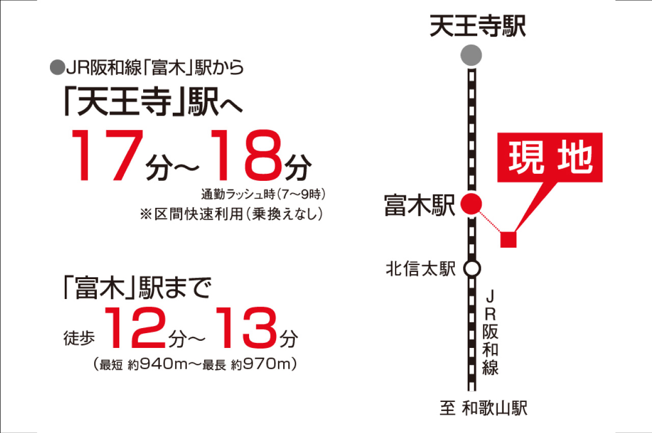 ・JR阪和線「富木」駅まで徒歩12分~13分。
