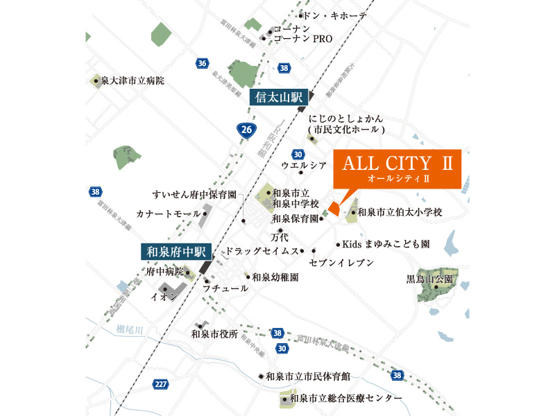 JR阪和線「和泉府中」駅 徒歩17~19分/自転車5分~6分(約1,320m~約1,510m)