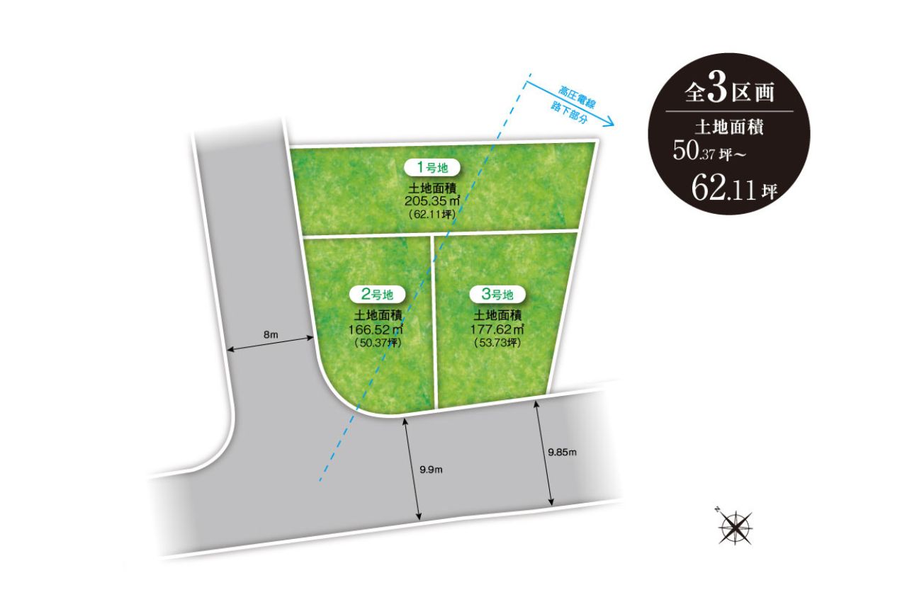 《自由設計対応》敷地面積はゆとりある50坪超!角地を含む全3区画の街が誕生!