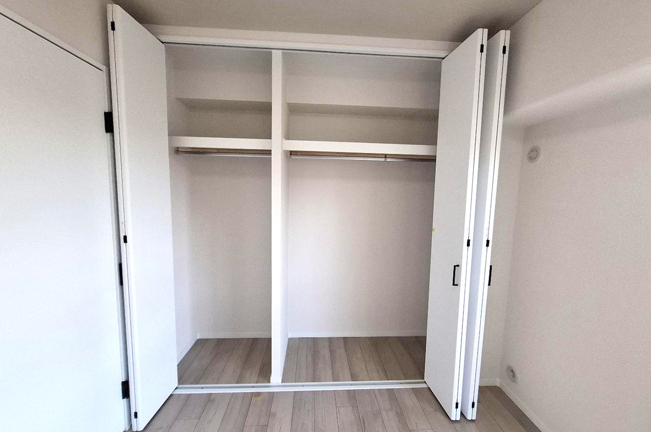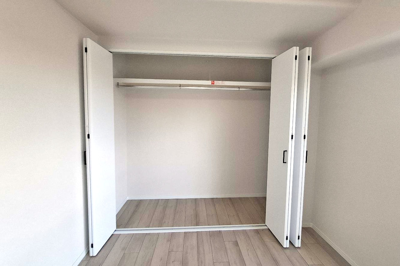 洋室約5.2帖にも部屋幅いっぱいのワイドなクローゼット付き。まっさらのクローゼットです。