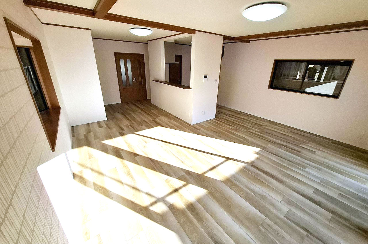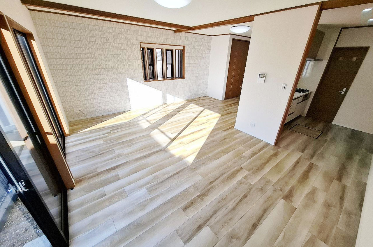 三面採光で明るく風通りの良いLDK。クロス貼替えなどのリフォームできれいに生まれ変わりました。