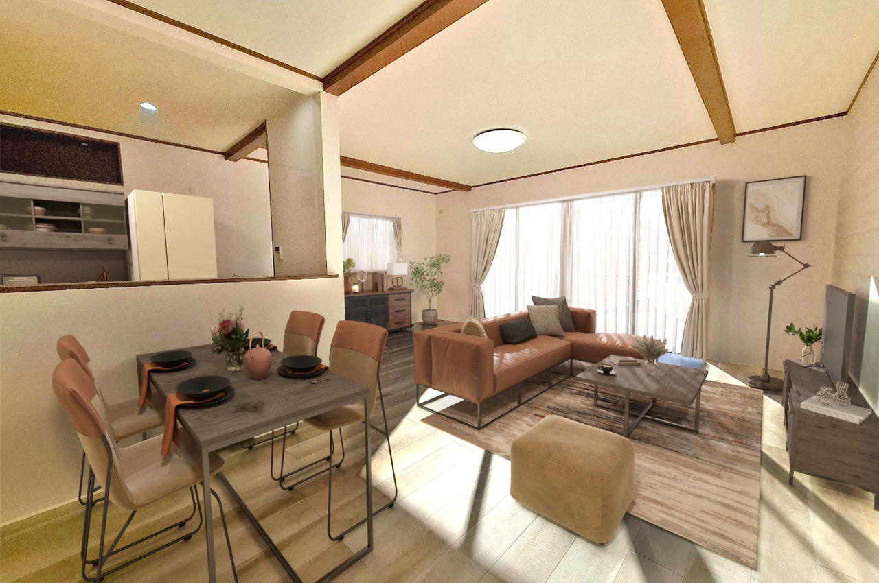 約22帖の広々LDK。家族みんながのびのびと寛げるゆとりある空間です。