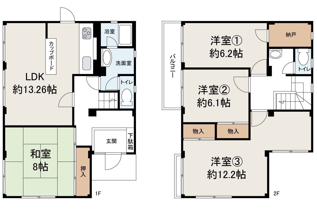 土地面積 | 135.84㎡ (41.09坪) (公簿) | 建物面積 | 118.02㎡ (35.70坪) (登記) |
