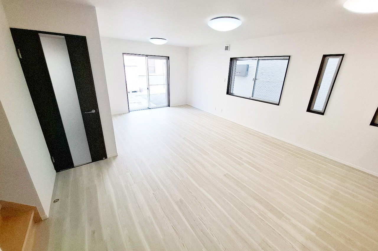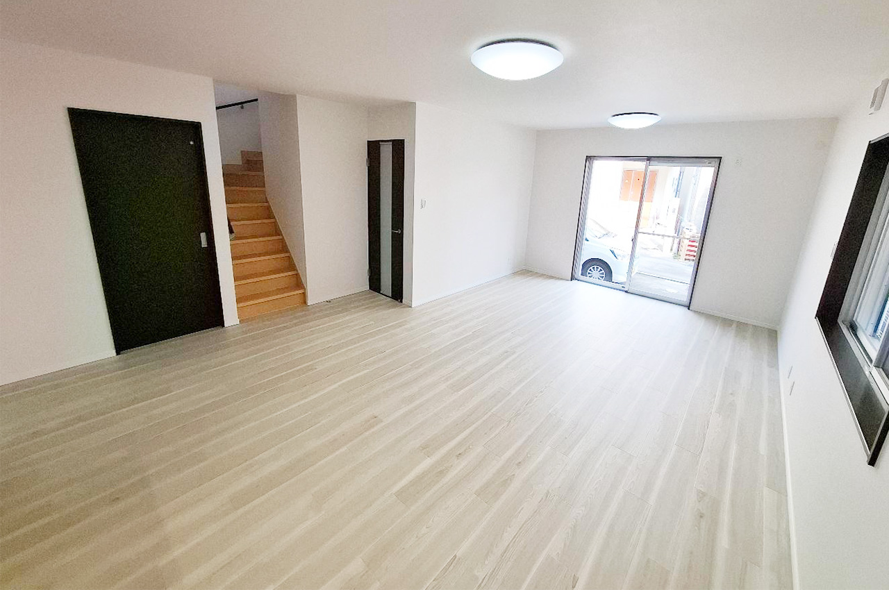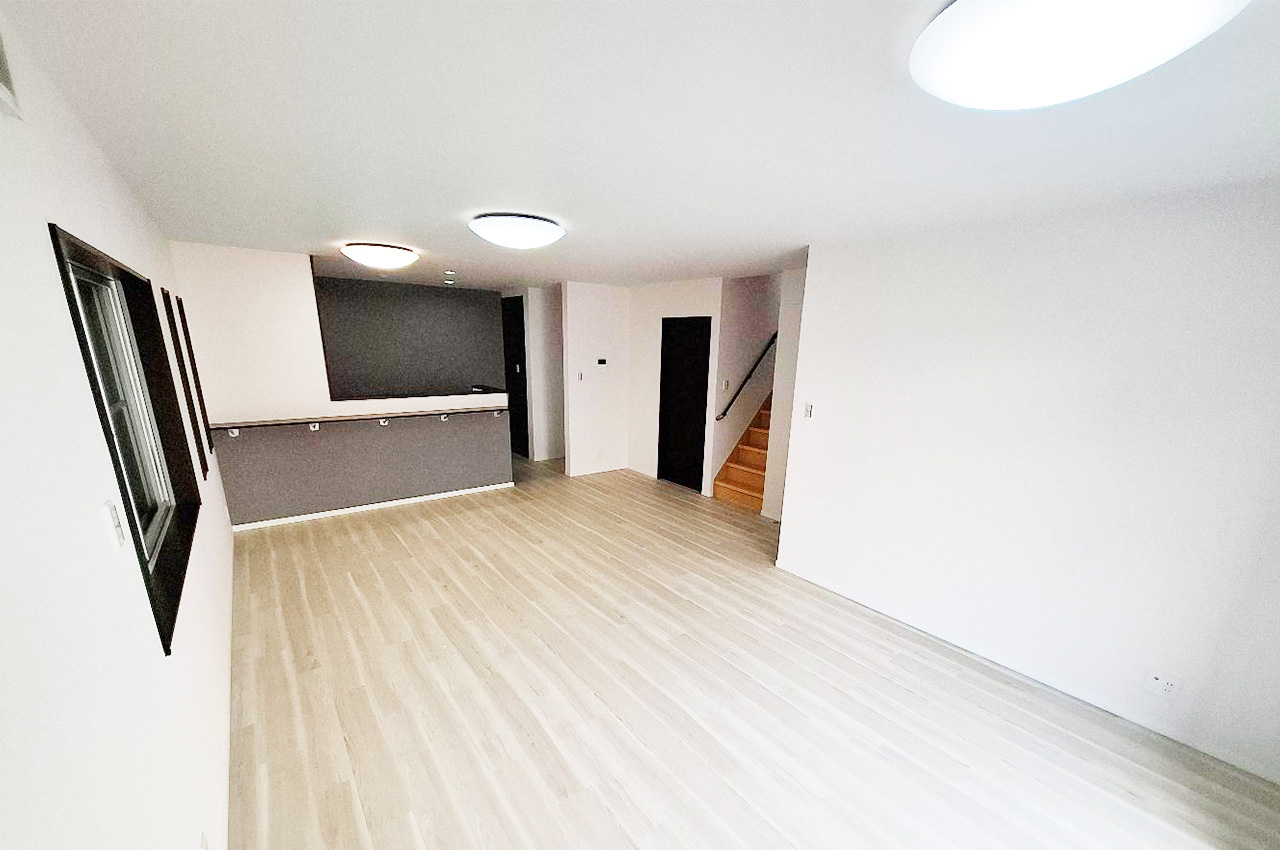 LDK:メープルミルキー色のフローリングが室内の明るさを引き立てます。