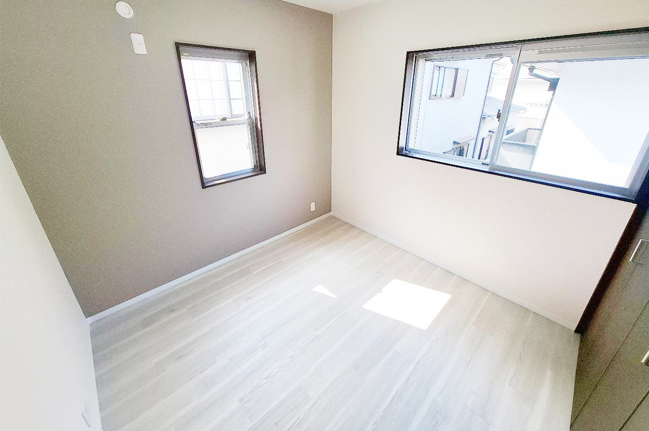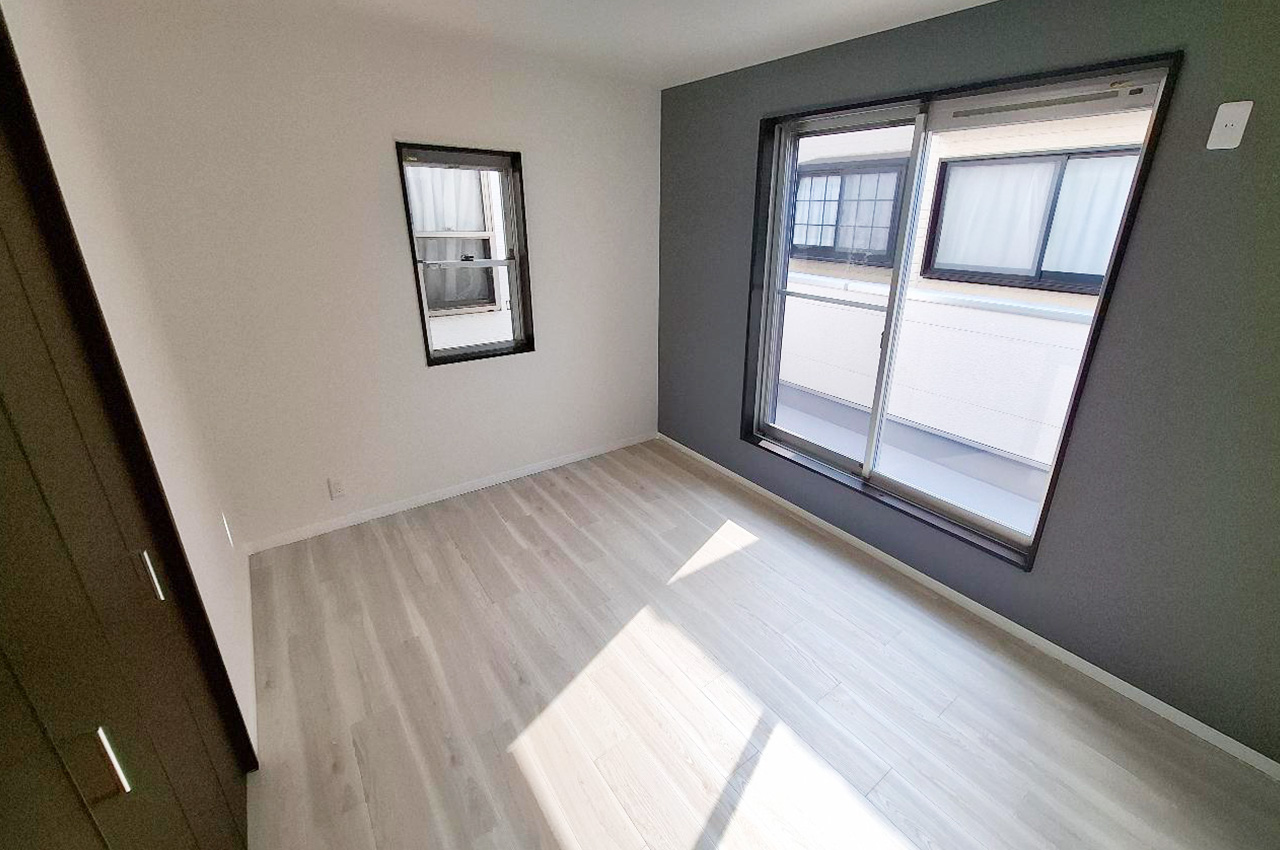 洋室③:グレーの落ち着いたアクセントクロスのお部屋は寝室にオススメです。