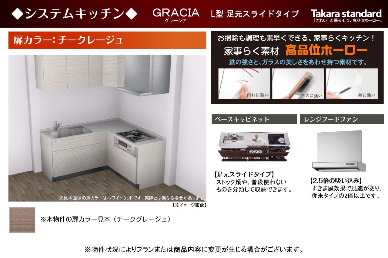 キッチン内もピカピカにリフォーム。タカラスタンダードのL型キッチンも新調済みです。