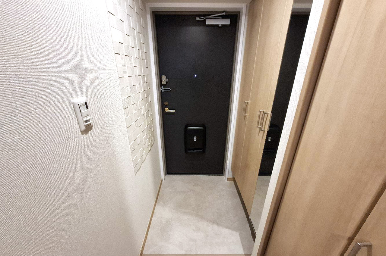 玄関:下駄箱新調、壁一部エコカラット貼り