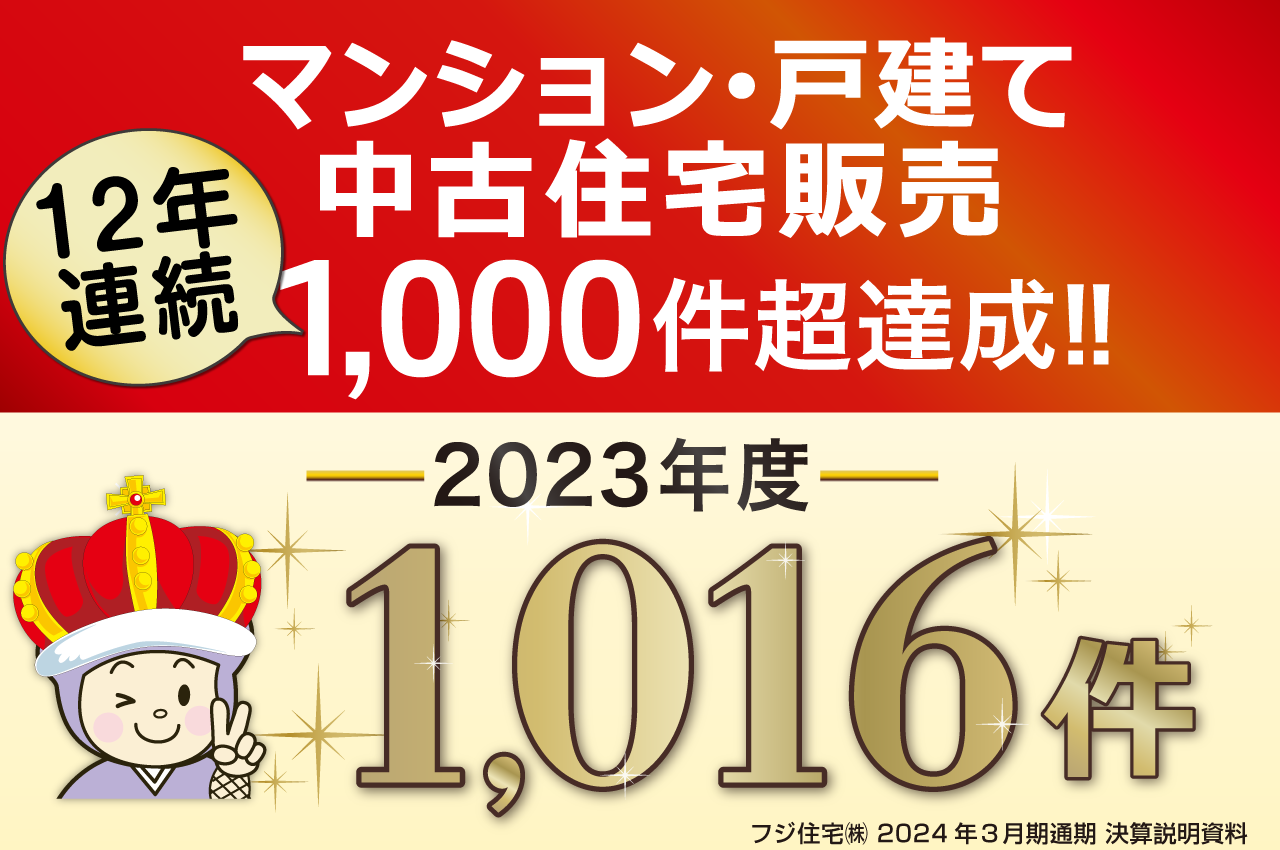 フジ住宅は「マンション・戸建ての中古住宅販売件数」において、12年連続1000件超を達成しました!