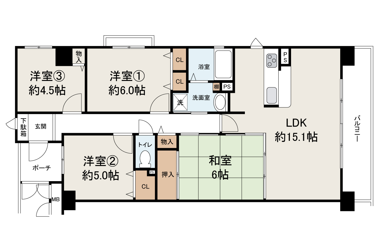| バルコニー面積 | 9.45㎡ | バルコニー向き | 南西 |