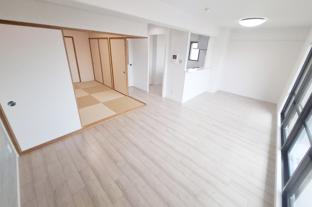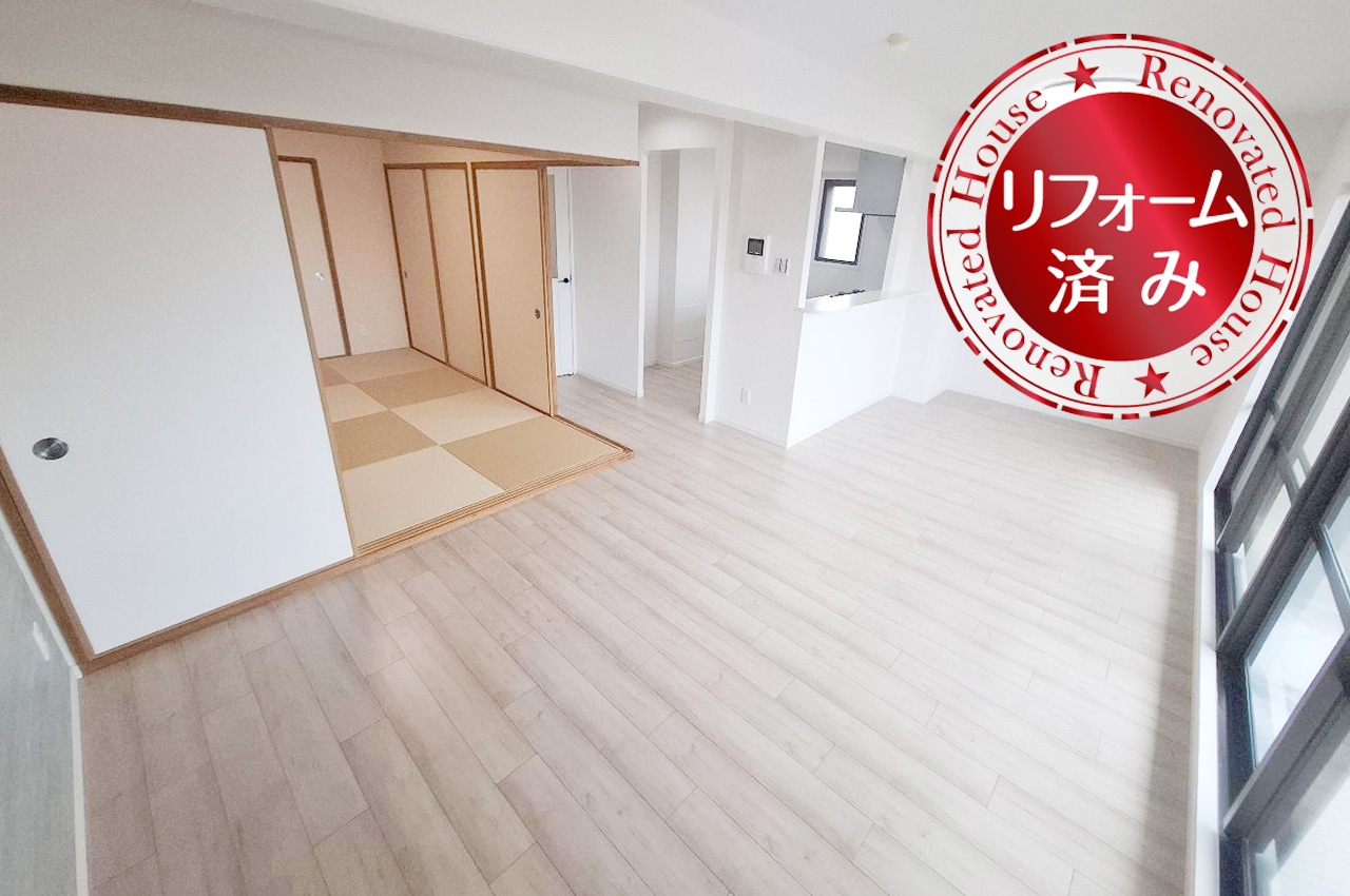 南西向きで日当り良好な約15帖の広々LDK。新生活に嬉しいフルリフォーム済みです。