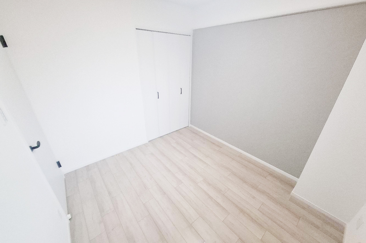グレーのアクセントクロスが落ち着いた雰囲気の洋室②。リフォームでまっさらのお部屋になりました。
