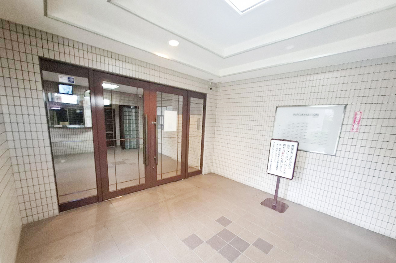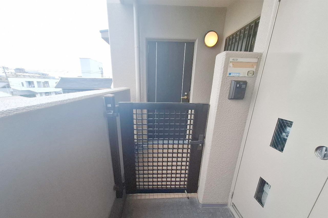 独立感のある玄関ポーチで安心感あり。角部屋で人目が少ないのも魅力です。