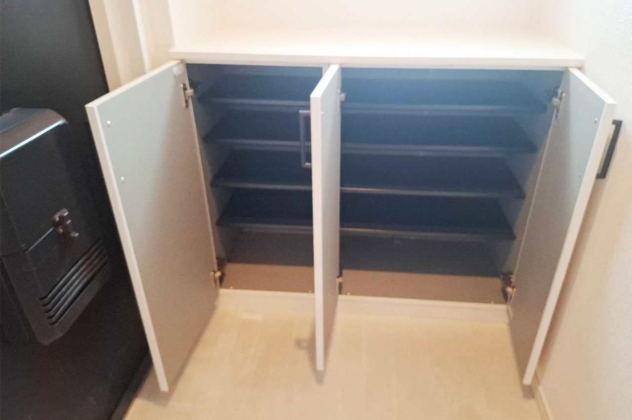 下駄箱は新調済み。靴をきっちりと収納でき、玄関をきれいに保てます。