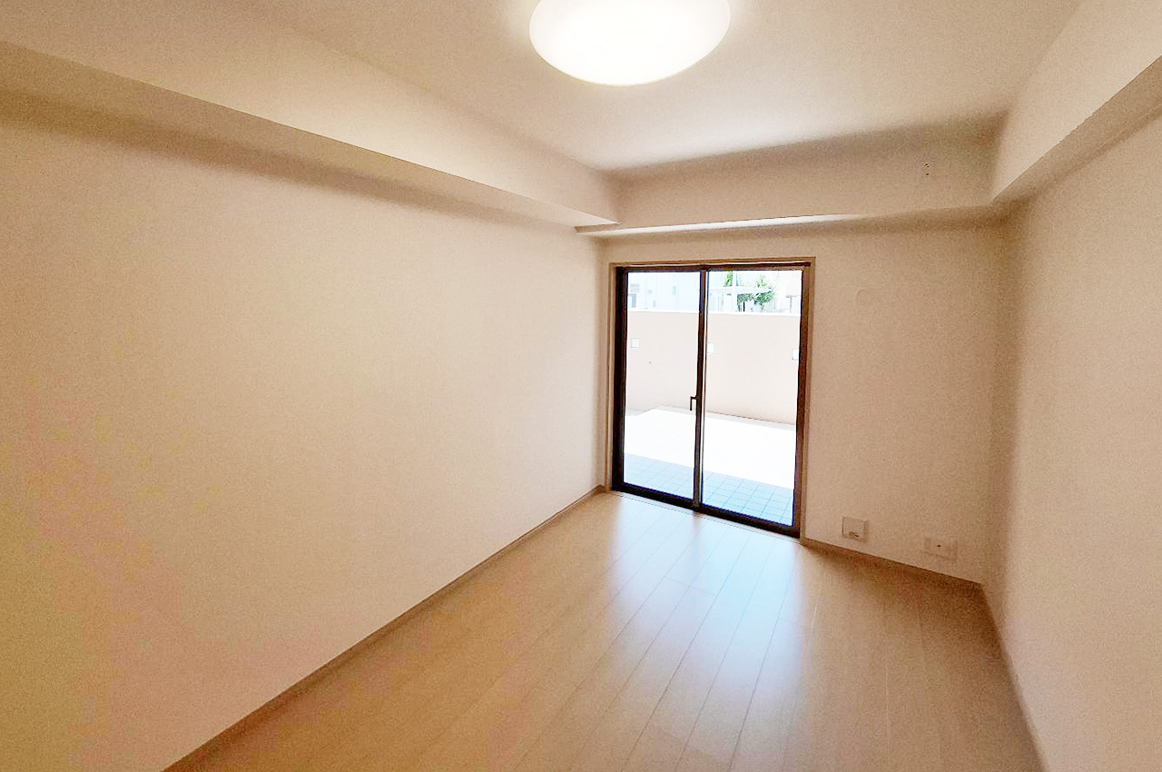 洋室①:テラスに出入り可能で通風性に優れ快適。約6.6帖の洋室は趣味や書斎など多用途に利用可能。