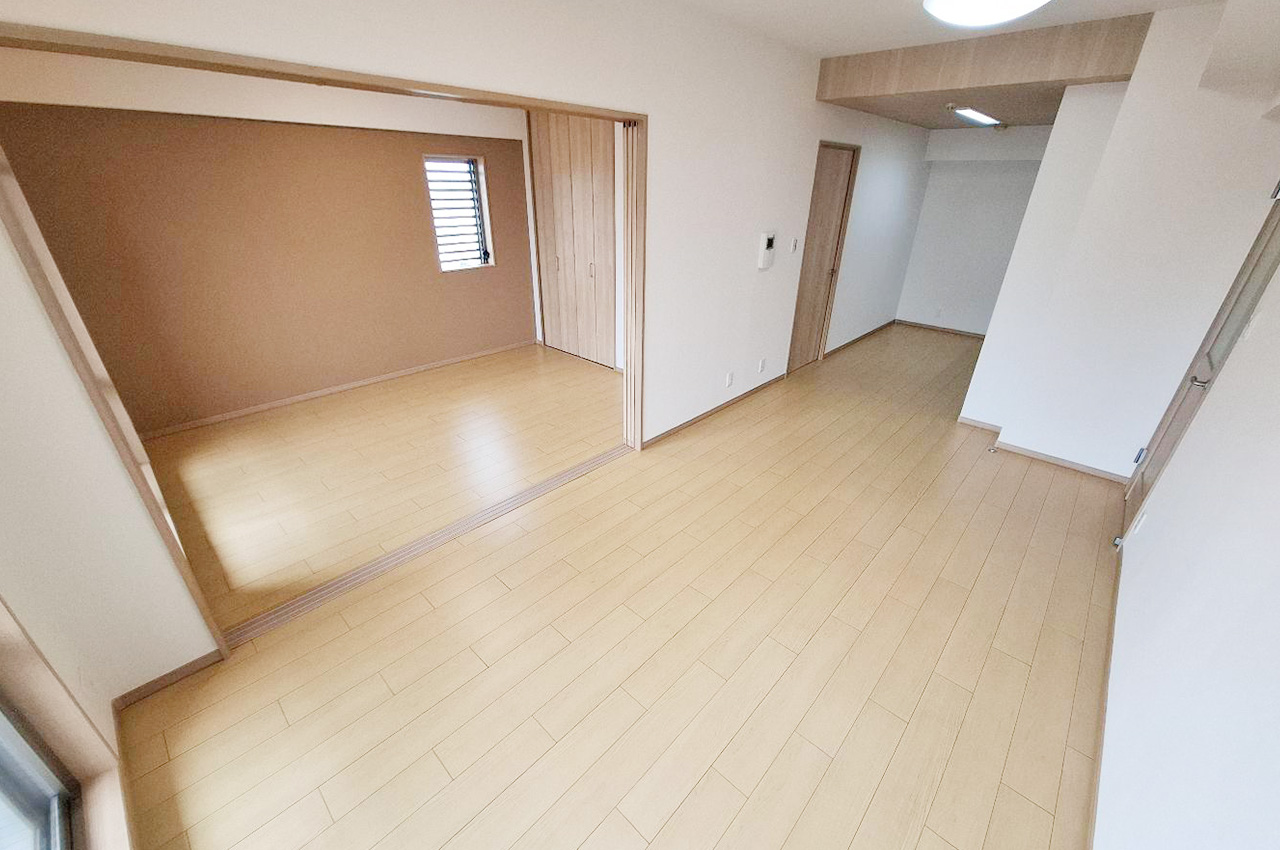 続き間仕様になったLDKと洋室。家族団らんも、個室利用も自在にアレンジできる快適な間取りです。