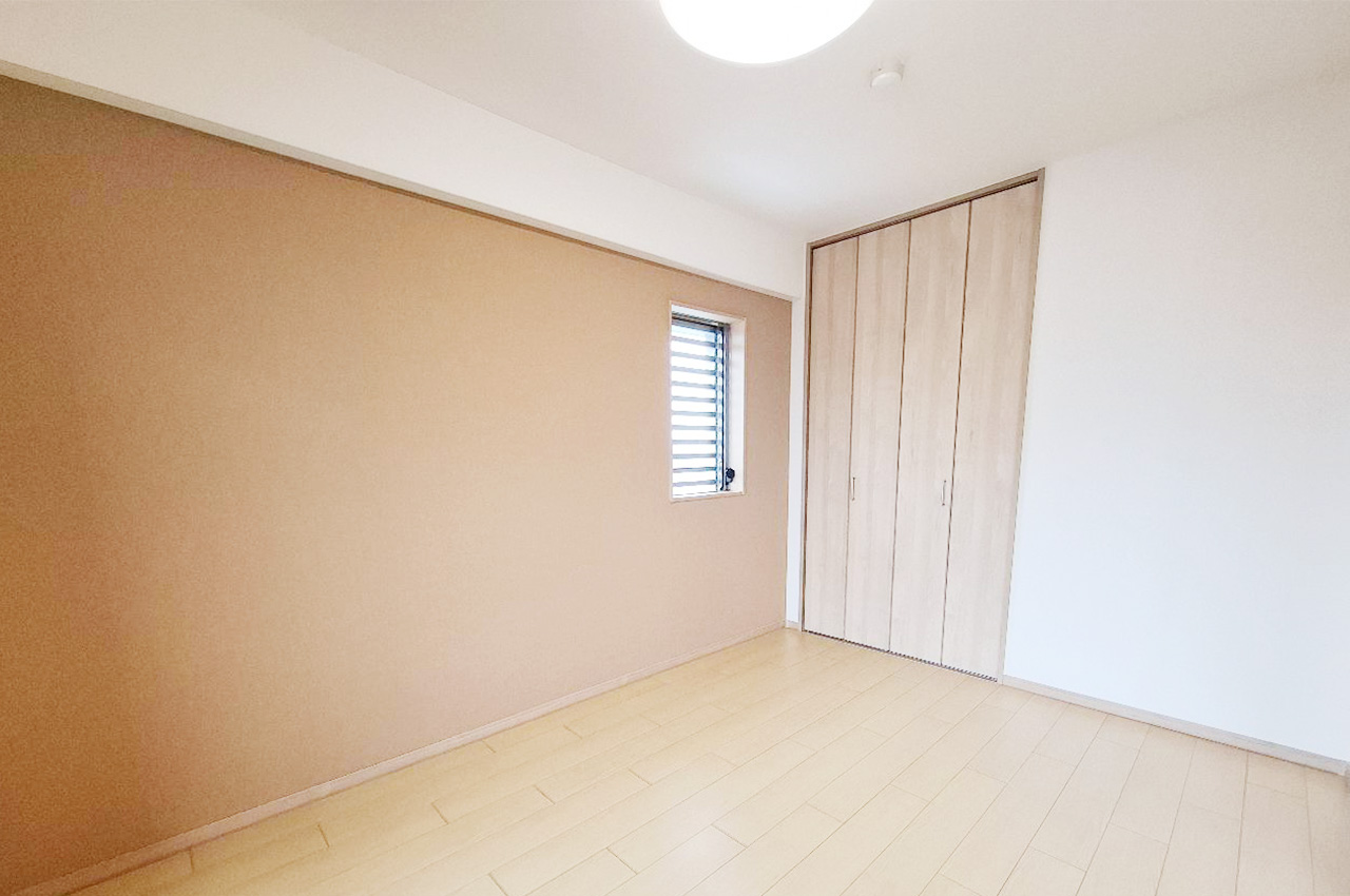 和室から生まれ変わった約5帖の洋室。新調したブラウンのアクセントクロスで温かみのある内装に。