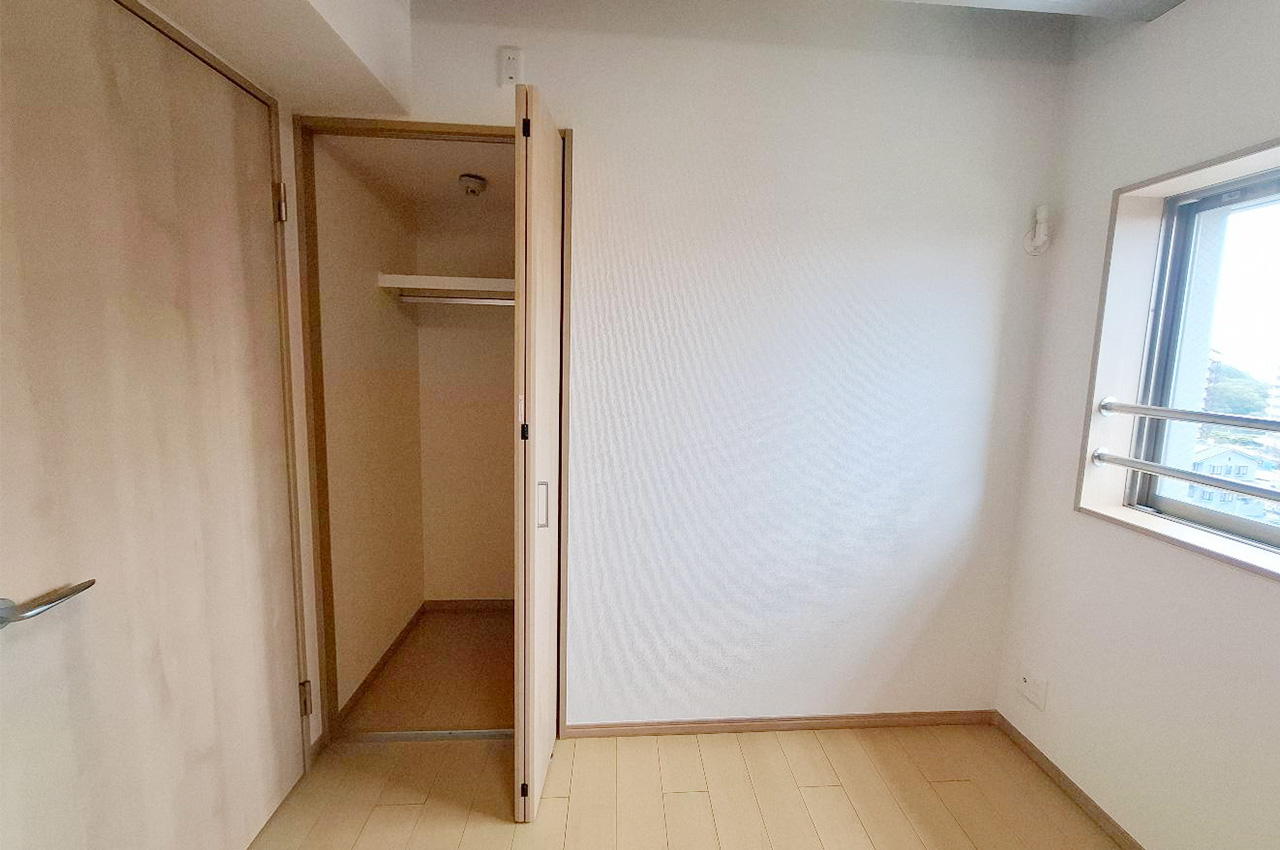 衣類・道具をまとめてしまえるゆったりとした納戸。新調済みのクローゼットが便利なポイント。