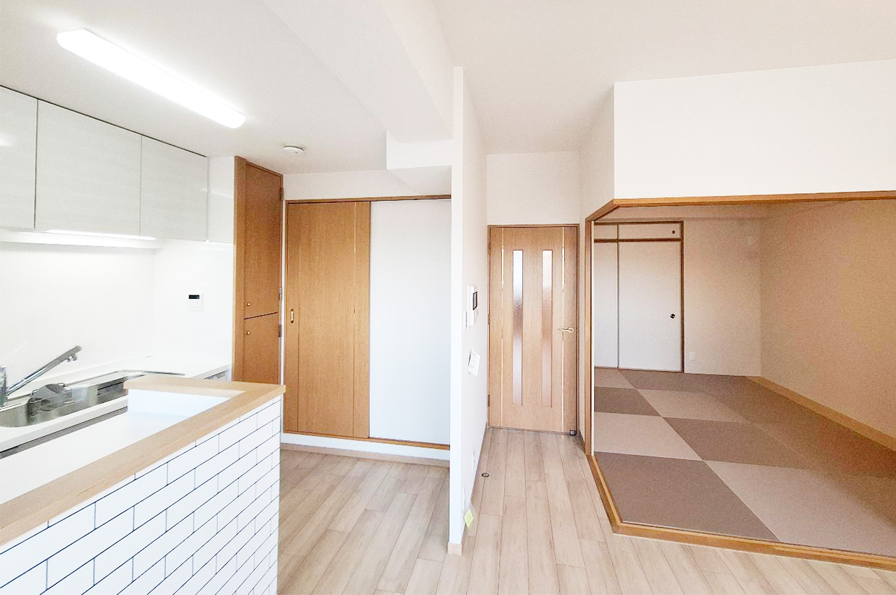 和室:半帖畳を新調し、落ち着いた雰囲気とモダンな印象を併せ持つ空間。清潔感があり快適に過ごせます。