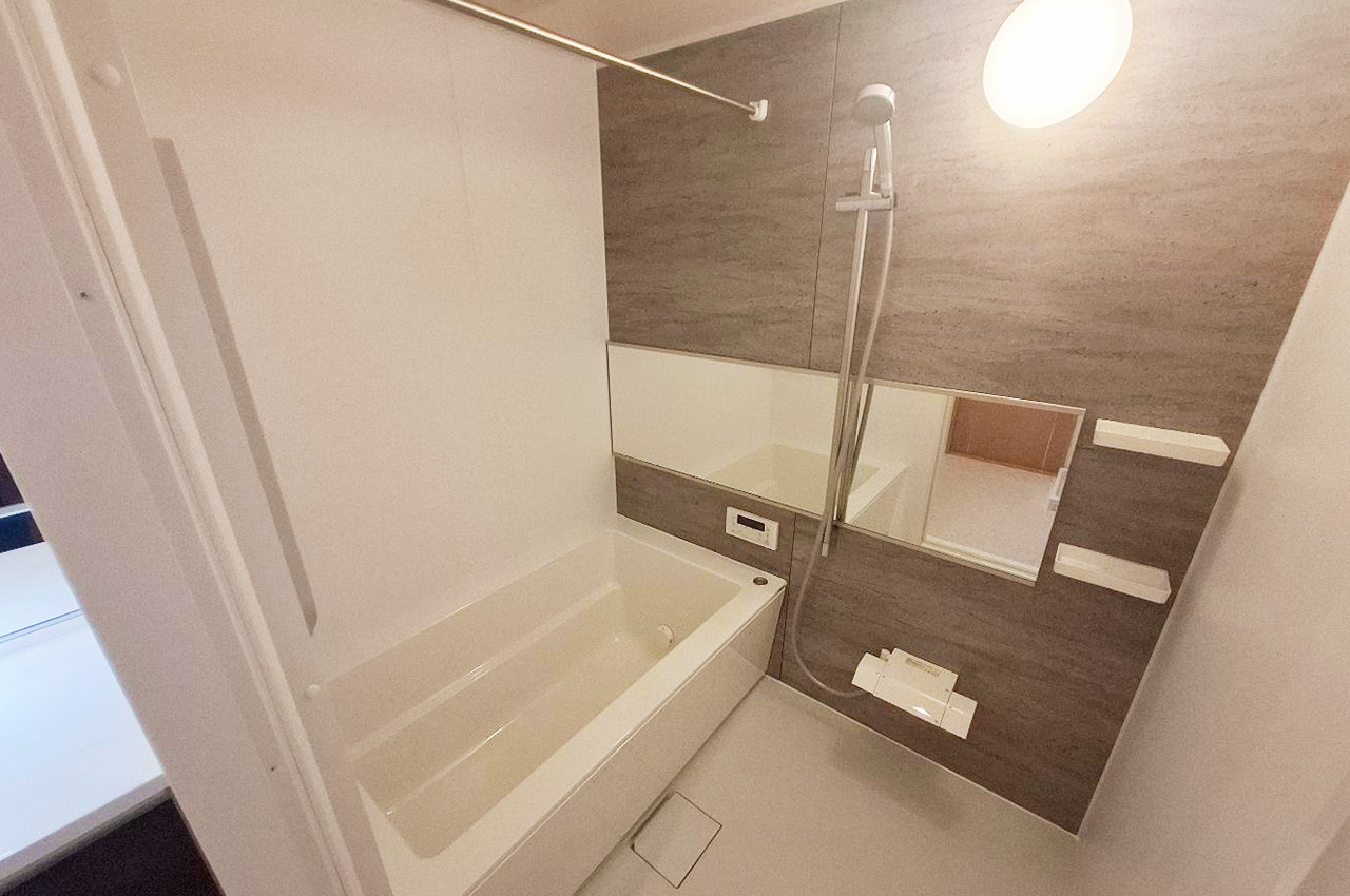 バスルーム:新調した浴槽は清潔感あり。リフォームで一新され、毎日のバスタイムが癒しの時間に。