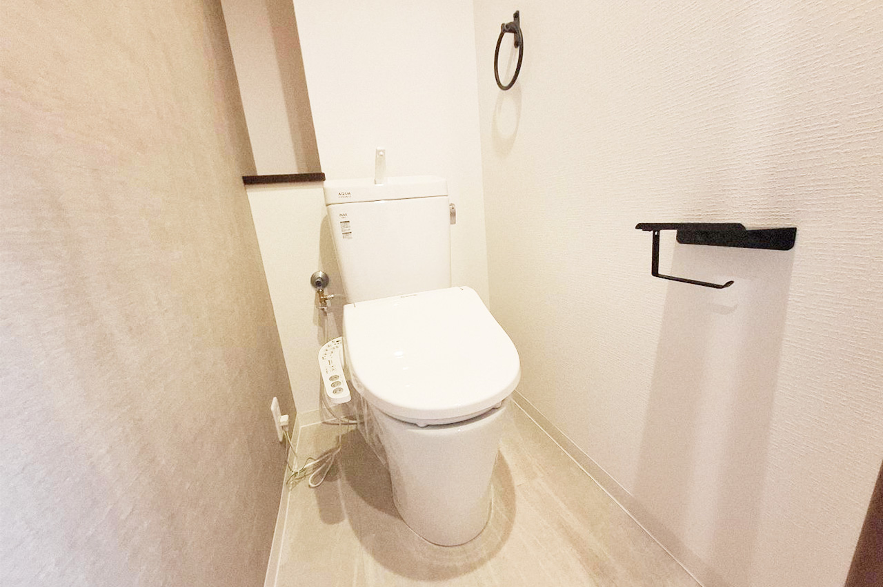 シンプルなトイレは清潔感があり落ち着いた雰囲気です。