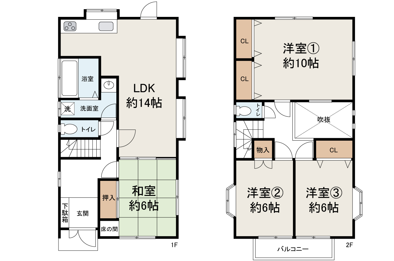 | 設備・特徴 | 電気 公営水道 オール電化(エコキュート) 公共下水 快造くん アフターサービス保証付 IHコンロ 全居室収納あり ゆとりの4LDK 駐車2台OK トイレ2ヶ所 全居室6帖以上 学校近し 買物便利 照明器具 食洗機 浴室乾燥機 壁付キッチン 浄水器 勝手口あり 吹抜 | ||